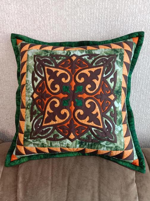 Ольга Краснослабодцева, которая увлекается лоскутным шитьем и делает оригинальные вещи для дома в технике пэчворк и аппликация, представит подушки с казахским орнаментом, сумки из лоскутков разноцветной ткани. Очень трудоёмкие, но очень красивые работы.
