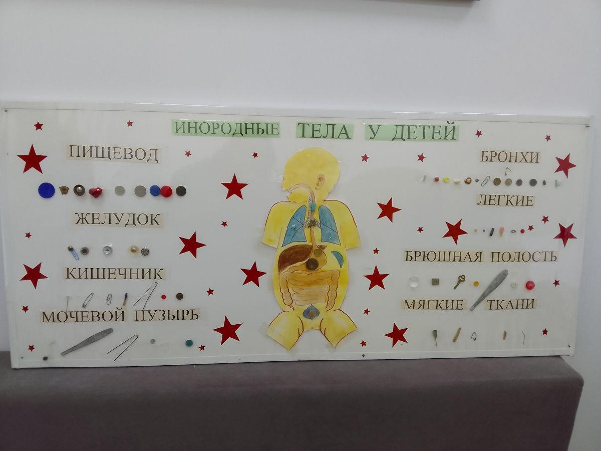 Заведующий отделением детской хирургии Центра матери и ребенка Кайрат Рахимжанов — высококвалифицированный специалист, врач с большим практическим опытом и глубокими знаниями. Именно он и его команда спасают детей, извлекая из их организмов инородные тела. По словам Кайрата Кусмановича, чаще всего дети проглатывают монеты, иголки, булавки, канцелярские скрепки, гвозди, шурупы. Среди экспонатов есть даже комсомольский значок — напоминание о том, что проблема существует давно. За десятилетия коллекция музея значительно пополнилась. Современные реалии внесли свои коррективы. Появились разборные игрушки с мелкими деталями, разнообразные конструкторы и неокубы.