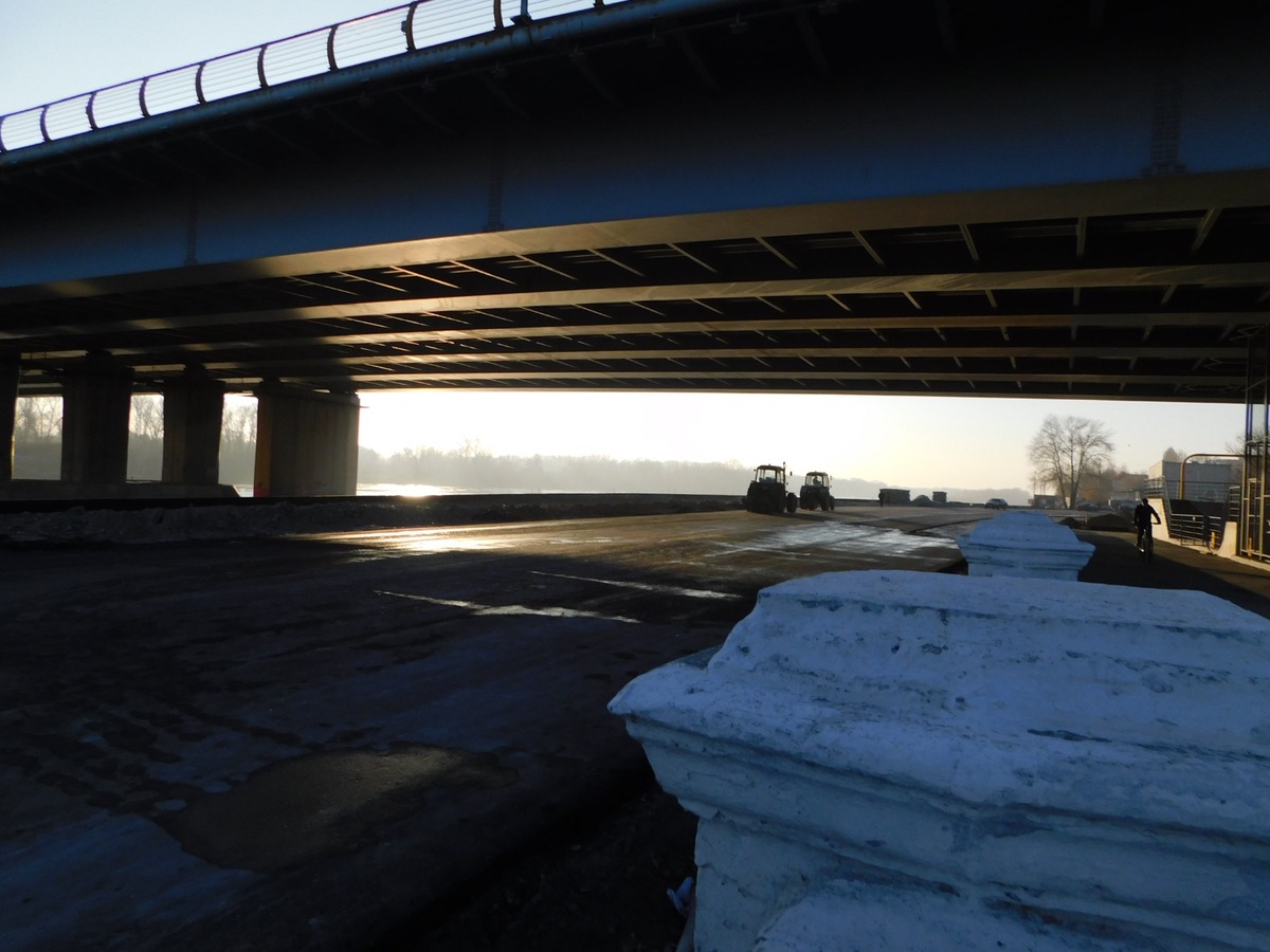 В перспективе городские власти планируют построить эстакаду, по которой с моста можно будет уходить непосредственно на проспект Победы. Ещё одна идея — устройство подмостового проезда на левом берегу, который будет служить для разворота, чтобы со стороны КШТ попасть, скажем, в Левобережный парк. Но пока реальная возможность разгрузить кольцо — это только подмостовой проезд на правом берегу, который сейчас достраивают. Он будет широким и комфортным.